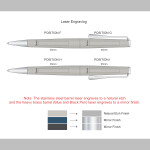 Elegant twist action ball pen with the choice of a brushed stainless steel barrel and a heavy brass barrel with matt finishes. This stunning pen features a unique propeller inspired clip with matching shiny chrome accents. It has a black LAMY M16 refill with 8000 metres of writing ink and a tungsten carbide ball for improved writing quality. STUDIO is 100% made in Germany with the LAMY brand tastefully inscribed on the upper barrel and it is beautifully presented in a LAMY gift box. The stainless steel barrel laser engraves to a natural etch and the heavy brass barrel laser engraves to a mirror finish.