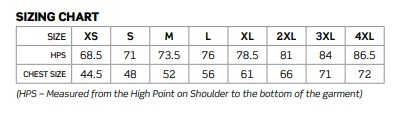 | CHEST | 51 | 53.5 | 56 | 58.5 | 61 | 63.5 | 66.5 | 70 | 73.5 |
