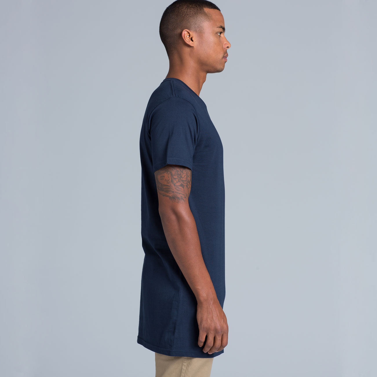 Crew neck, extra long body roughly 10cm longer than our standard tees